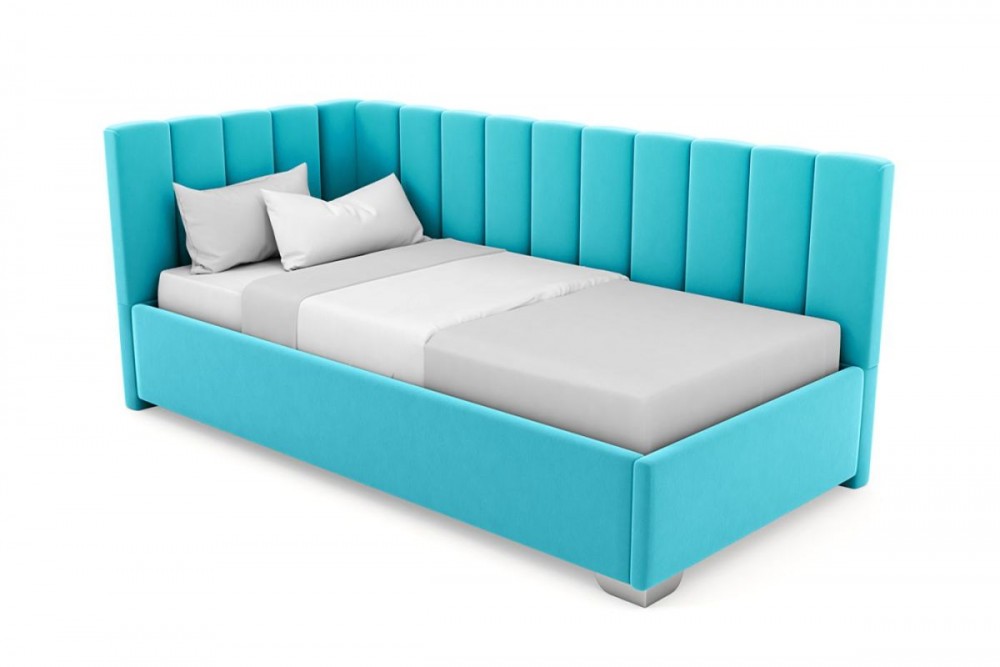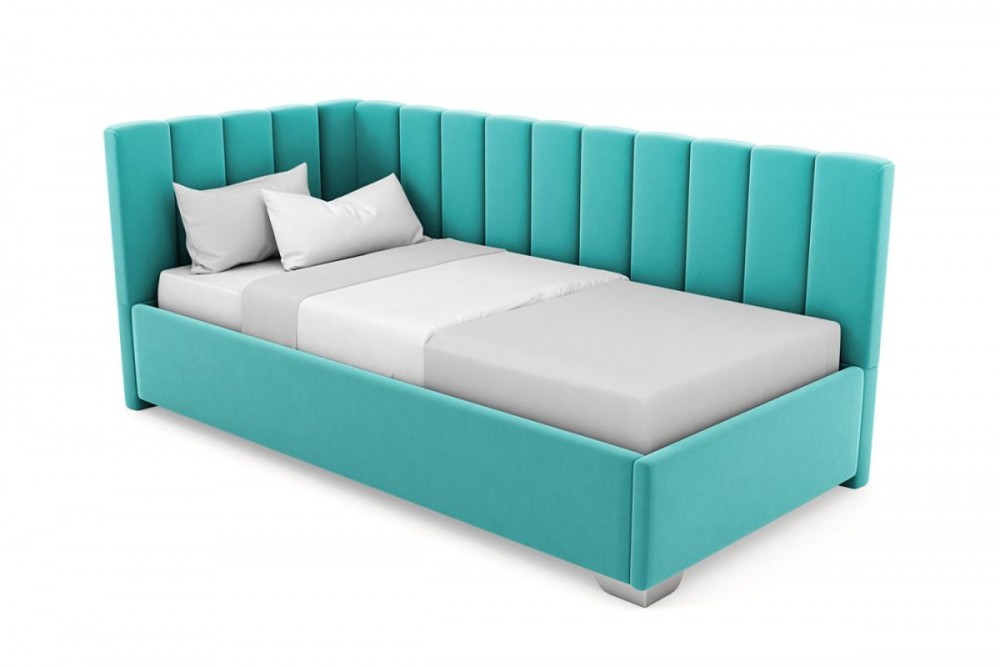 Кровать угловая Хлоя интерьерная +основание/ПМ/бельевое дно (80х200) 3 кат. ткани