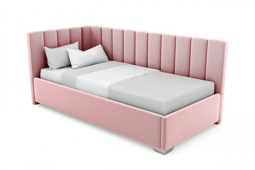 Кровать угловая Хлоя интерьерная +основание/ПМ/бельевое дно (80х200) 5 кат. ткани