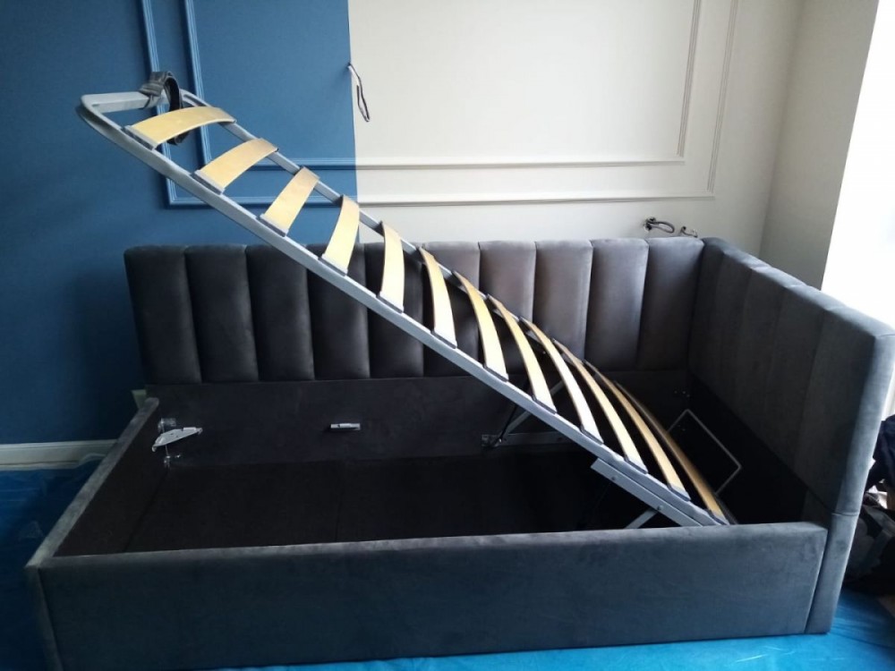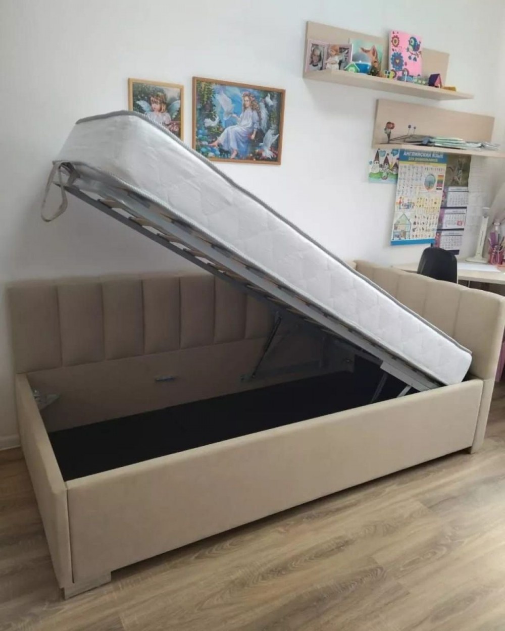 Бельевое дно кровати состоит из 3 ящиков на липучках. Которые выдерживают достаточное наполнение (в пределах разумного ). Плюс липучек в том, что они фиксируют ящики в кровати образуя единный монолит и благодаря этому кровать не будет двигаться из стороны в сторону.