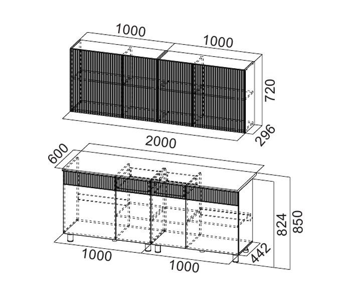 Особенности: Верхние и нижние створки, а так же накладки ящиков не имеют ручек.